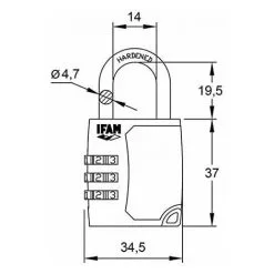 Cadenas C35s. Zinc. 34,5mm. Arc ø4,7mm. Avec Combinaison. Ifam