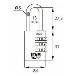 Cadenas Col Combi30. Noir. 30mm. Arc ø5mm. Avec Combinaison. Ifam