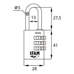 Cadenas Col Combi30. Vert. 30mm. Arc ø5mm. Avec Combinaison. Ifam