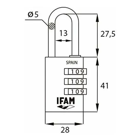 Cadenas col combi30. rouge. 30mm. arc ø5mm. avec combinaison. corps en aluminium, arc en acier chromé, ifam.